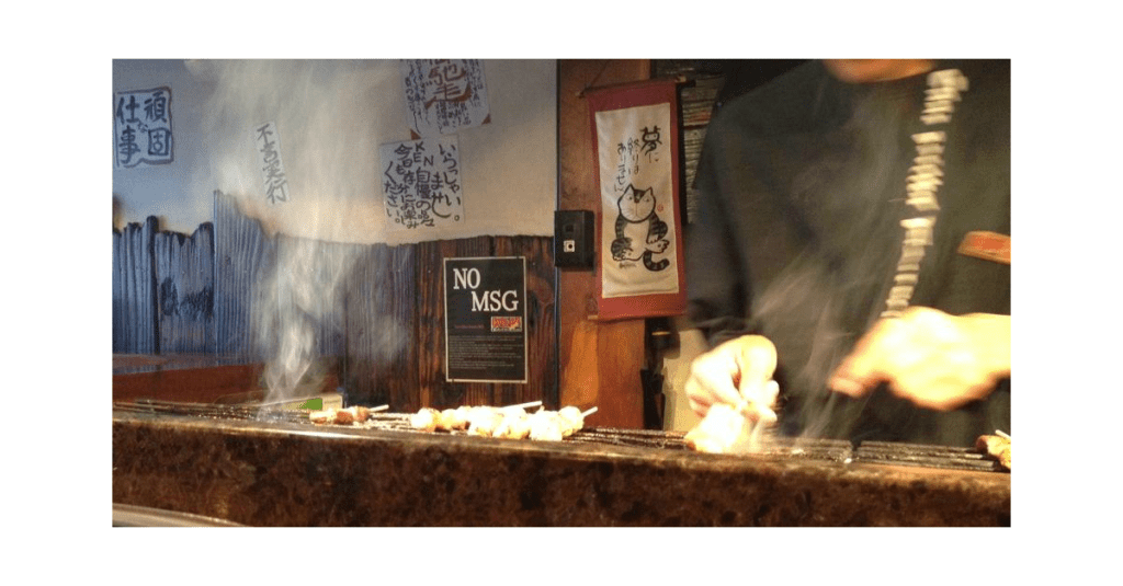 - There’s also a cute NO MSG sign behind him. Obviously everyone asks as it just tastes so good. I can imagine him pointing and giving a cheeky wink when asked what’s the secret to great Yakitori.