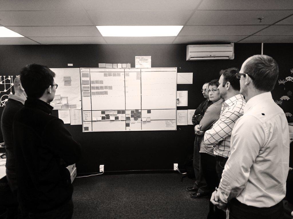 - How the artefacts of scrum, like the scrum board with post it notes depicting workflow, have really helped business prioritisation