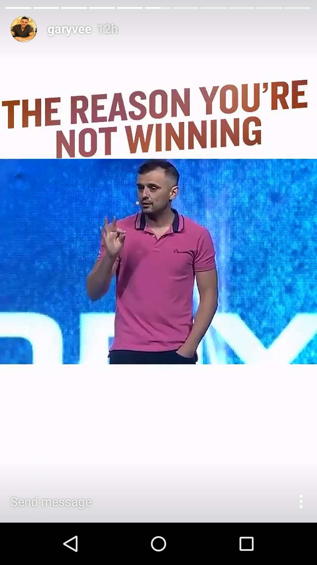 @garyvee Owner and instigator of Winelibrary.tv and the social media agency Vaynermedia uses his Stories to alert followers of his latest motivational videos – linking to his DailyVee updates in his bio.