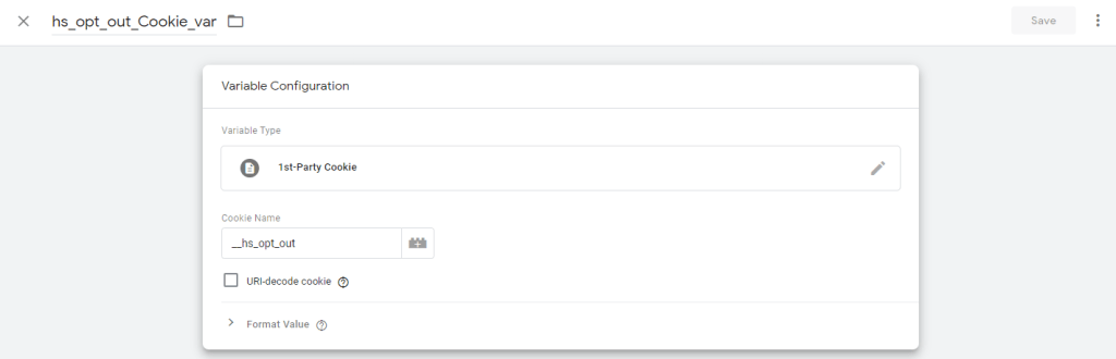 Step one, create a new variable in Google Tag Manager that will contain the value of the cookie.